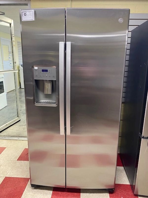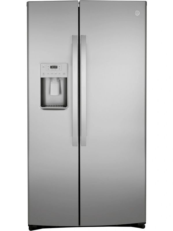 GE - 23.2 Cu. Ft. Side-by-Side Refrigerator with External Ice & Water Dispenser - Stainless Steel