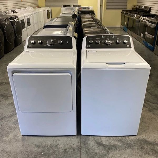 GE - 3.9 Cu. Ft. Top Load Washer and 5.9 Cu.Ft Electric Dryer Laundry Center - White
