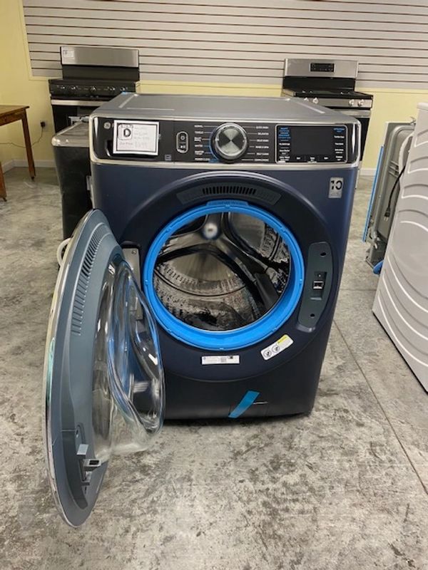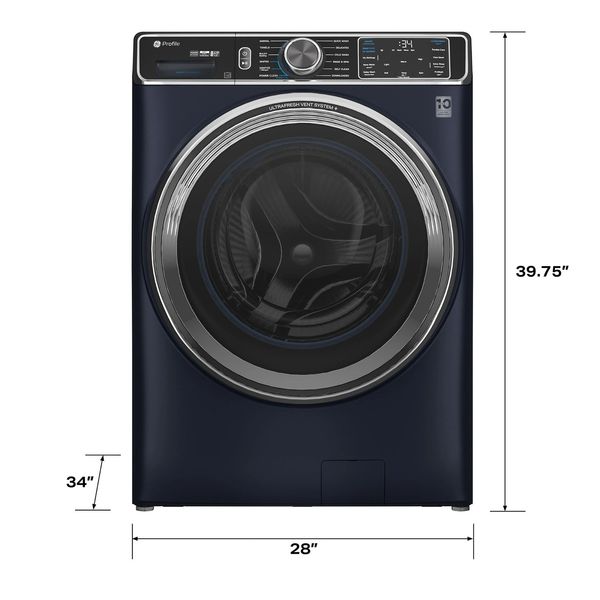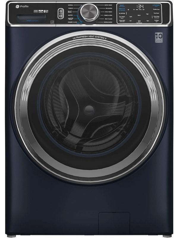 GE Profile - 5.3 Cu. Ft. Stackable Smart Front Load Washer with Steam and UltraFresh Vent System+ With OdorBlock - Sapphire Blue